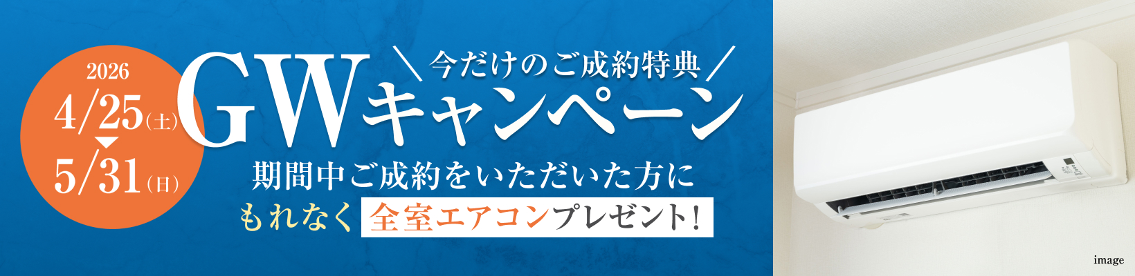 ※本キャンペーン期間中に対象マンションをご成約いただき、2026年5月31日までにご契約をいただくことが条件となります。(ご成約キャンペーンを利用できるのは1世帯1回限りとし1物件のみとします。)契約解除となった場合や引渡が2026年6月1日以降の場合は無効となります。※本キャンペーンは予告なく終了する場合がございます。他のキャンペーンと併用はできません。インテリアオプションに起因または関連した一切の損害については責任を負いません。※一部対象外となる住戸がございます。機種・施工会社は売主指定となります。※他のキャンペーンとの併用はできません。キャンペーン詳細は各物件担当者にお問い合わせください。