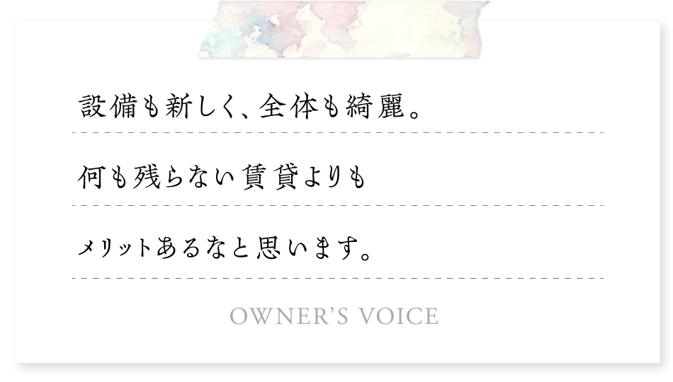 賃貸はどれだけ住んでも家賃を払い続けなければいけませんが、分譲マンションは住宅ローンを完済すれば住居費の負担を大幅に抑えられます。また、売却や賃貸として運用することもでき、資産形成に役立てることができます。